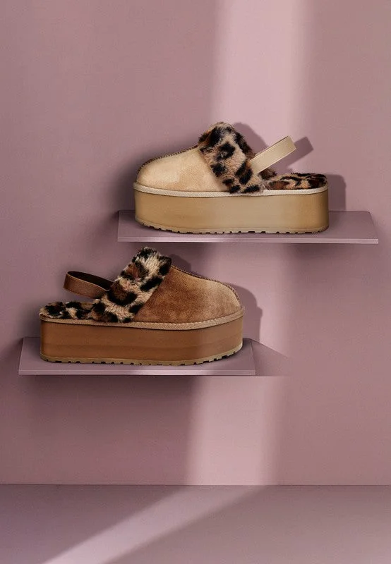 Kutchu Leopard Faux Fur Platform Classic Slingback